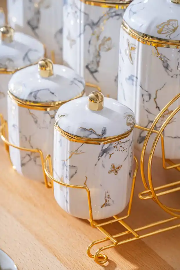 Mutfakta hem işlevsel hem dekoratif bir öğe olarak kullanılabilen bu baharatlık takımı, günlük kullanım için ideal bir tercihtir.