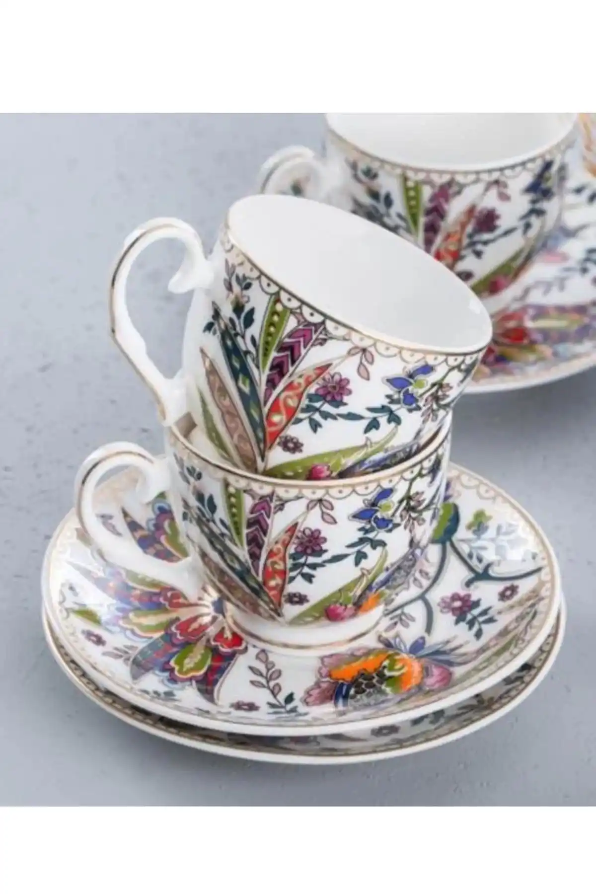 Acar GRN5034 Kaira Çiçek Desenli Porselen Kahve Fincan Takımı 6'lı