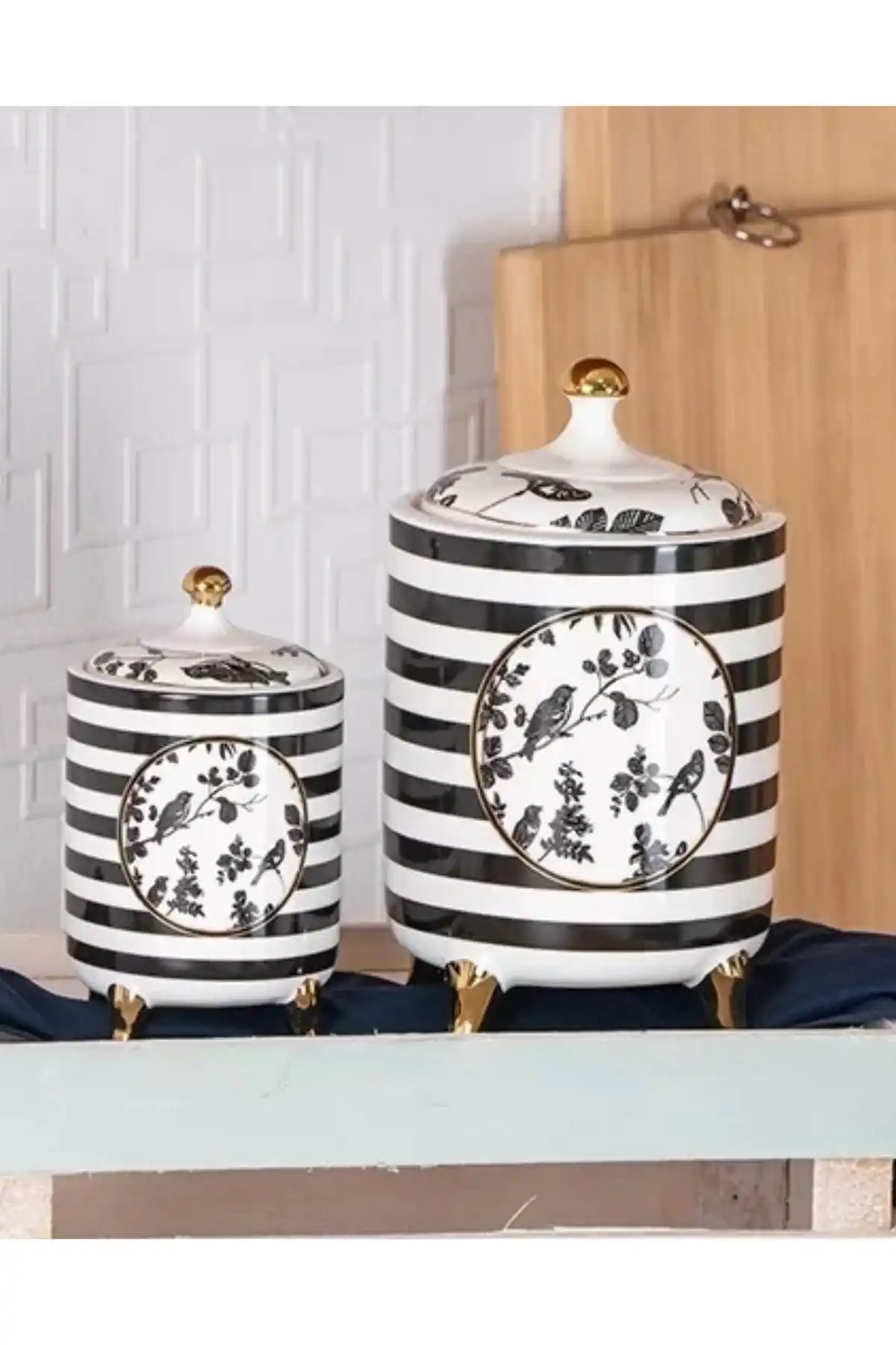 Acar KAI5471 Kuş Desenli Çizgili Stella Baharat Seti 2'li