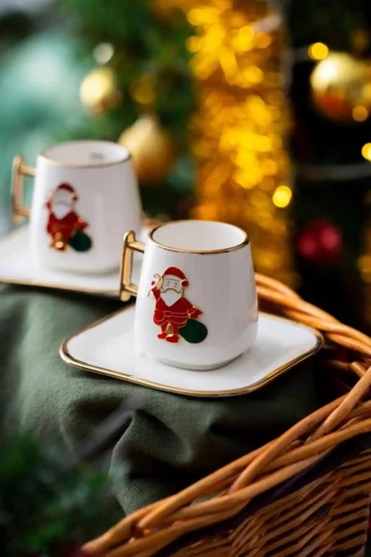 Takımda 2 adet kahve fincanı bulunur. Noel Baba temalı desenleri, içecek sunumlarınıza eğlenceli ve estetik bir görünüm kazandırır. Günlük kullanımda da tercih edilebilecek bu fincanlar, temizliği kolay ve dayanıklıdır.