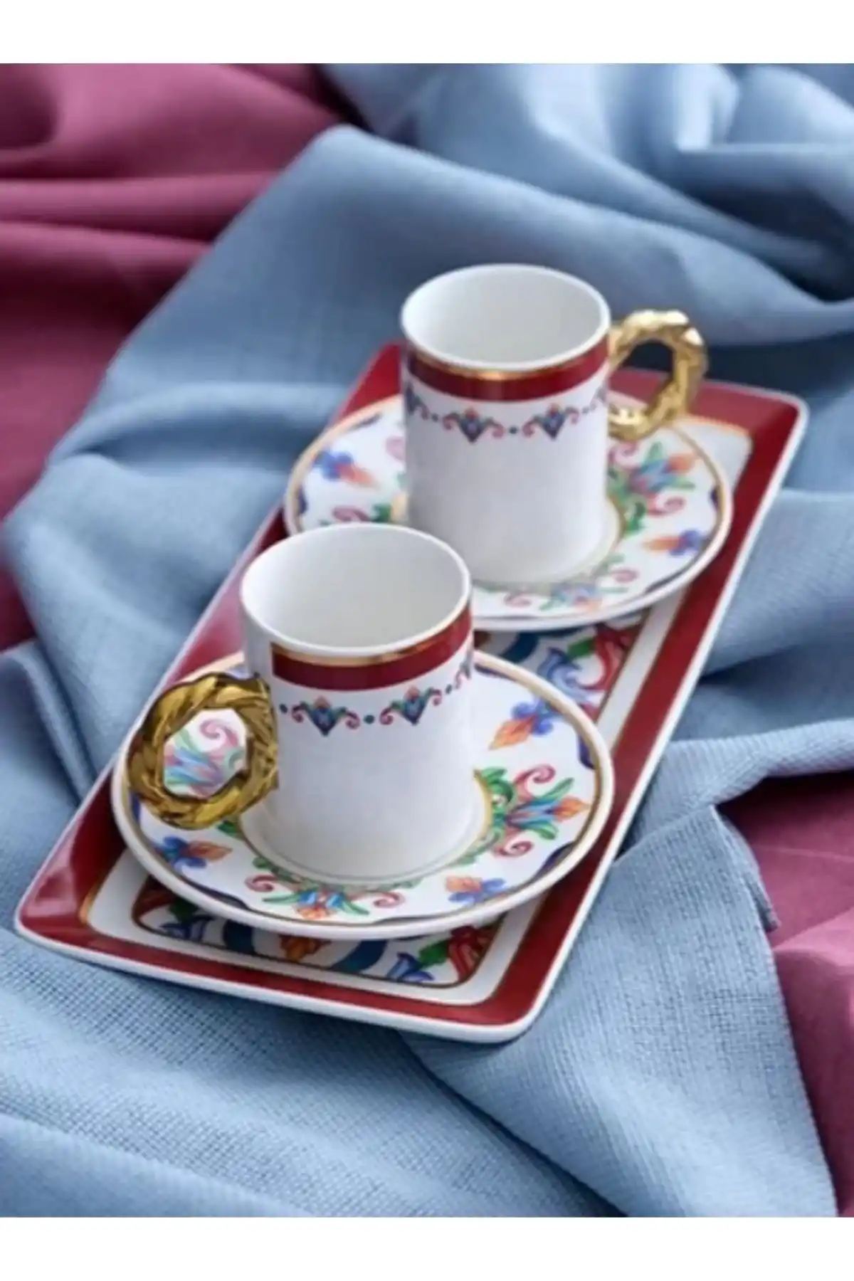 Acar SHP6015 Kırmızı Detaylı Kahve Fincan Takımı 2’li