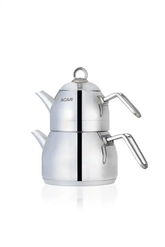 Acar Alexi Aile Çelik Çaydanlık, geniş hacmi ve dayanıklı yapısıyla kalabalık ailelerin çay keyfi için özel olarak tasarlanmıştır. Paslanmaz çelik gövdesi ve ısıya dayanıklı metal kulpları sayesinde uzun ömürlü ve güvenli kullanım sunar.