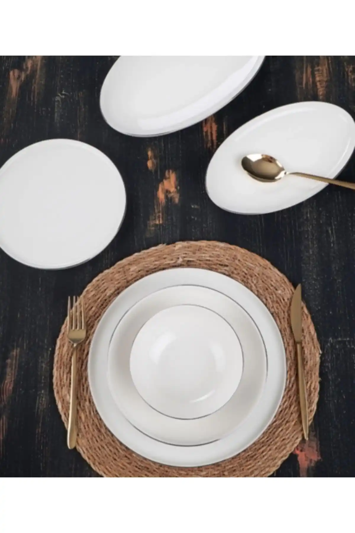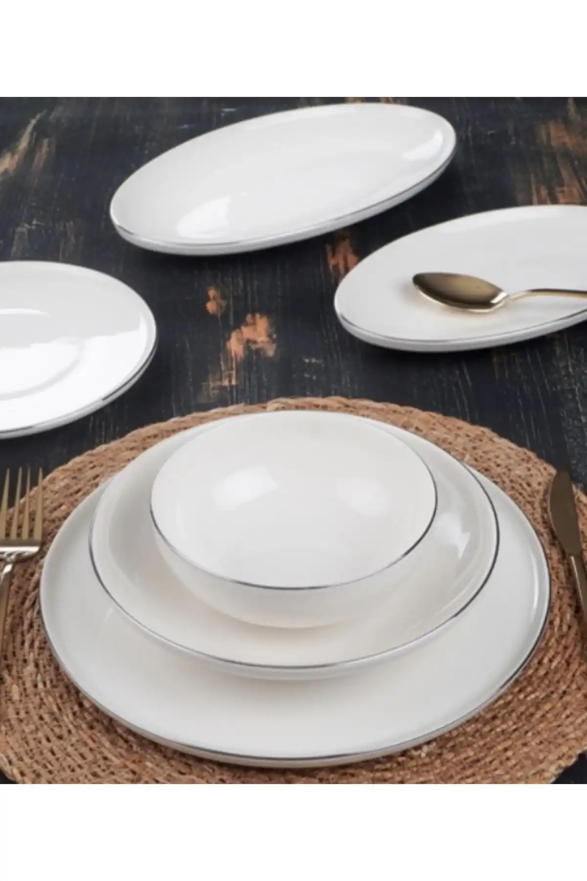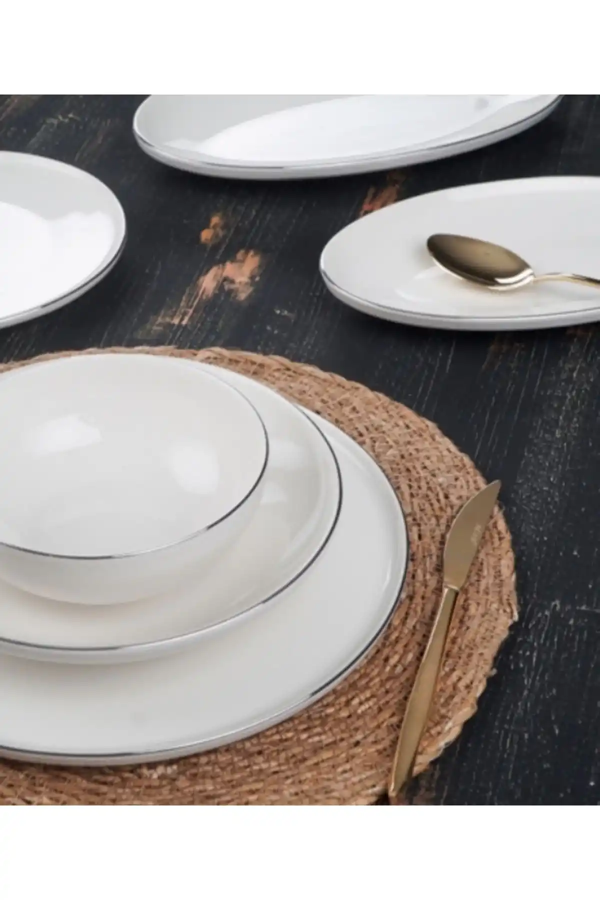 Acar XTL5541 Silver Detaylı Beyaz Porselen Yemek Takımı 27 Parça