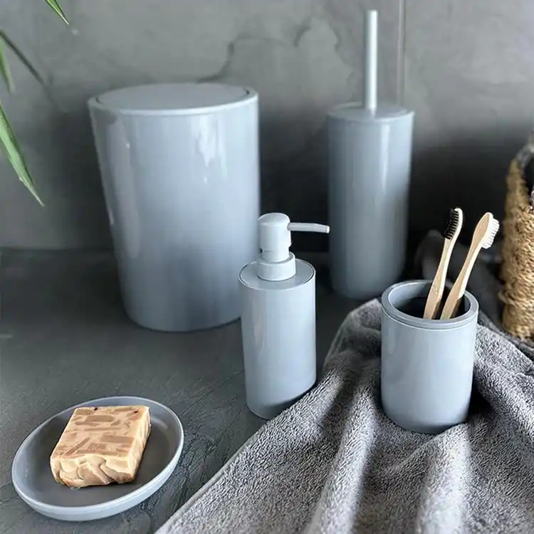 Ansan Flores Akrilik Gri Banyo Seti 5 Parça