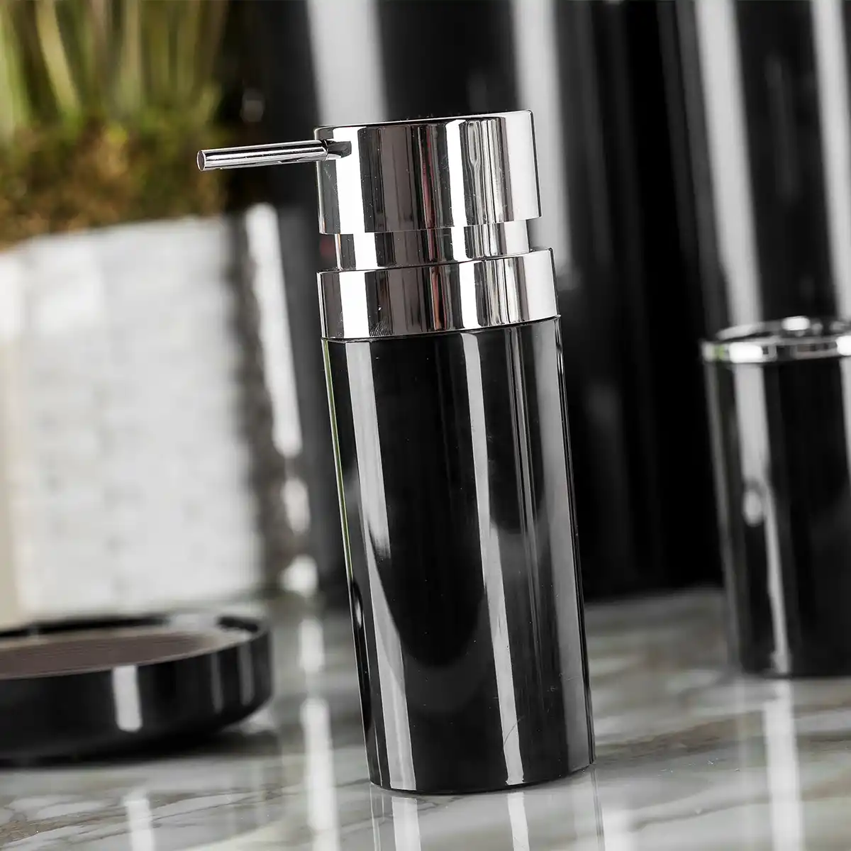 Ansan ANS E31-06 Lenox Plastik Siyah Sıvı Sabunluk 6,5 x 18,5 cm 300 ml