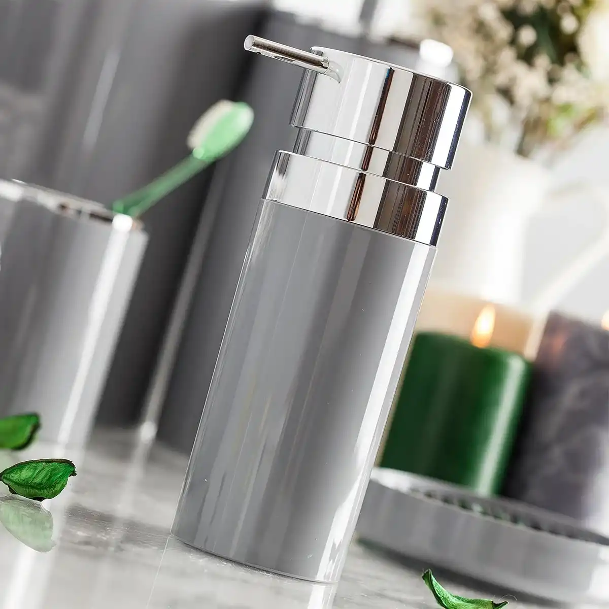 Ansan ANS E31-07 Lenox Plastik Gri Sıvı Sabunluk 6,5 x 18,5 cm 300 ml