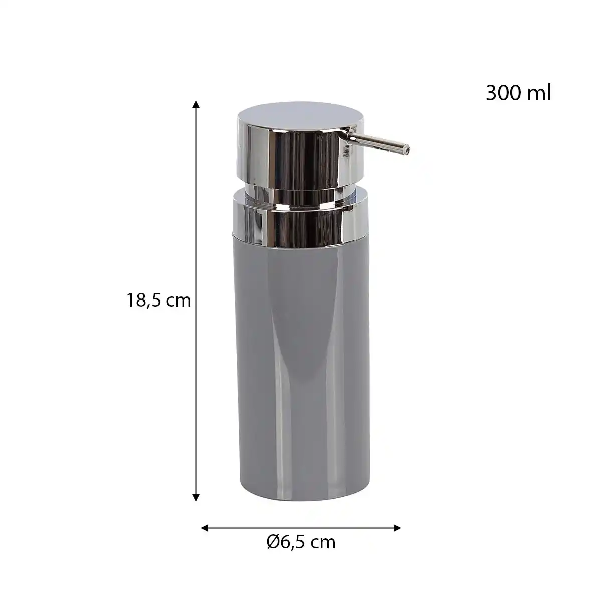 Gri tasarımıyla banyonuza veya mutfağınıza modern bir görünüm kazandırır.Dayanıklı plastik malzeme, uzun süreli kullanım imkânı sunar. 6,5 x 18,5 cm ölçüleri ve 300 ml kapasitesi, günlük kullanım için ideal hacim sağlar. Ergonomik tasarımı sayesinde kolay doldurma ve kullanım imkânı verir.