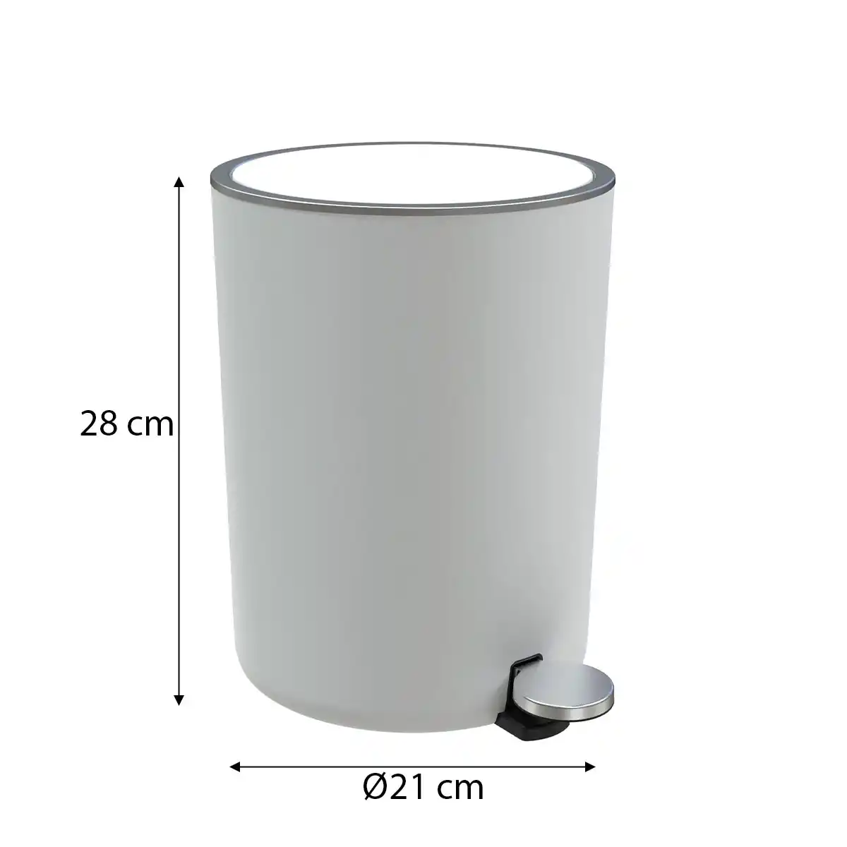 Beyaz tasarımıyla modern ve temiz bir görünüm sunar.Dayanıklı plastik malzeme, uzun süreli kullanım sağlar. Pedallı mekanizma, hijyenik ve pratik kullanım olanağı sunar. 21 x 28 cm ölçüleri ve 5 L kapasitesi, ev veya ofis kullanımına uygundur. Kompakt yapısı sayesinde dar alanlarda kullanım için idealdir.