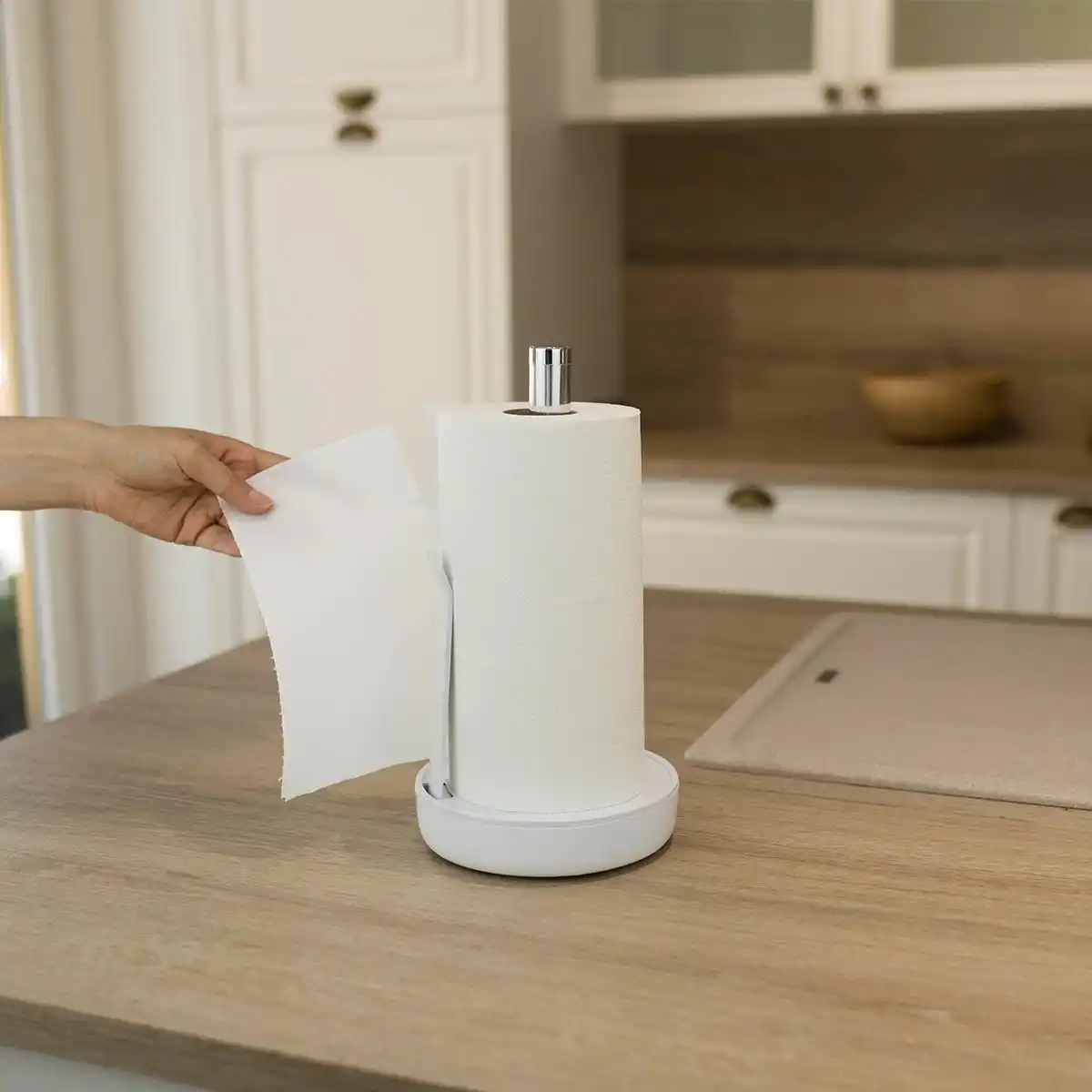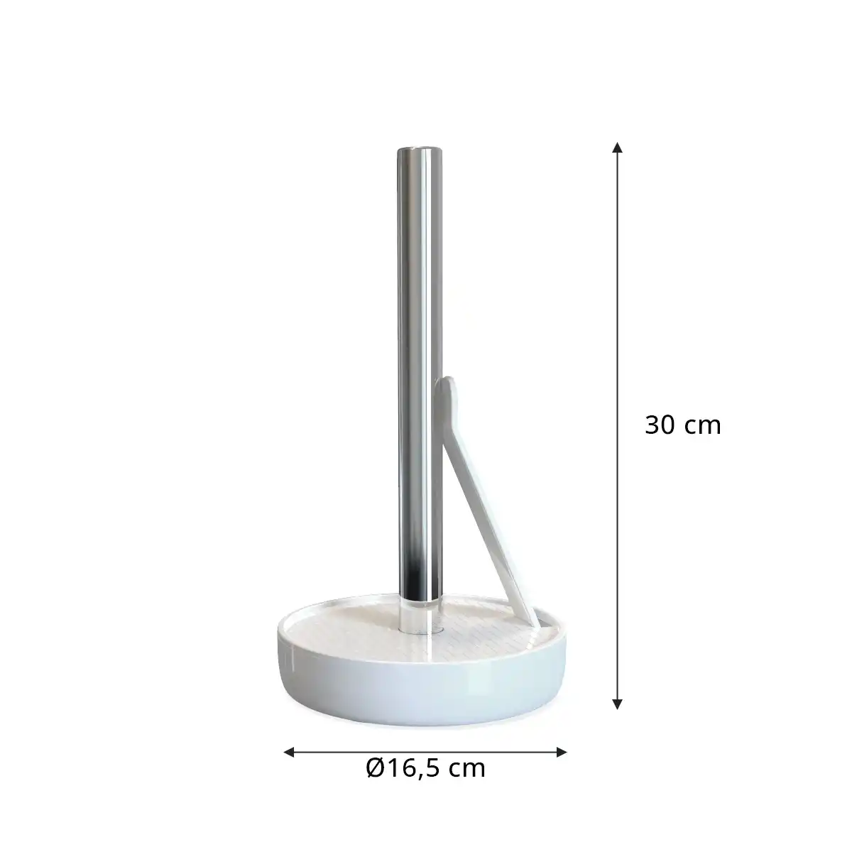 Beyaz tasarımıyla mutfak veya banyonuza şık ve modern bir görünüm kazandırır.Plastik ve çelik malzeme kombinasyonu, dayanıklılık ve uzun ömürlü kullanım sağlar. 16,5 x 30 cm ölçüleri, kağıt havlularınızı pratik ve düzenli bir şekilde saklamanıza olanak tanır. Kompakt tasarımı sayesinde tezgah üzerinde az yer kaplar.