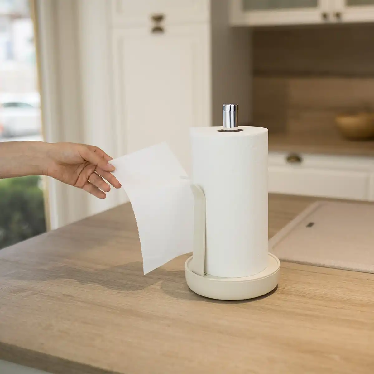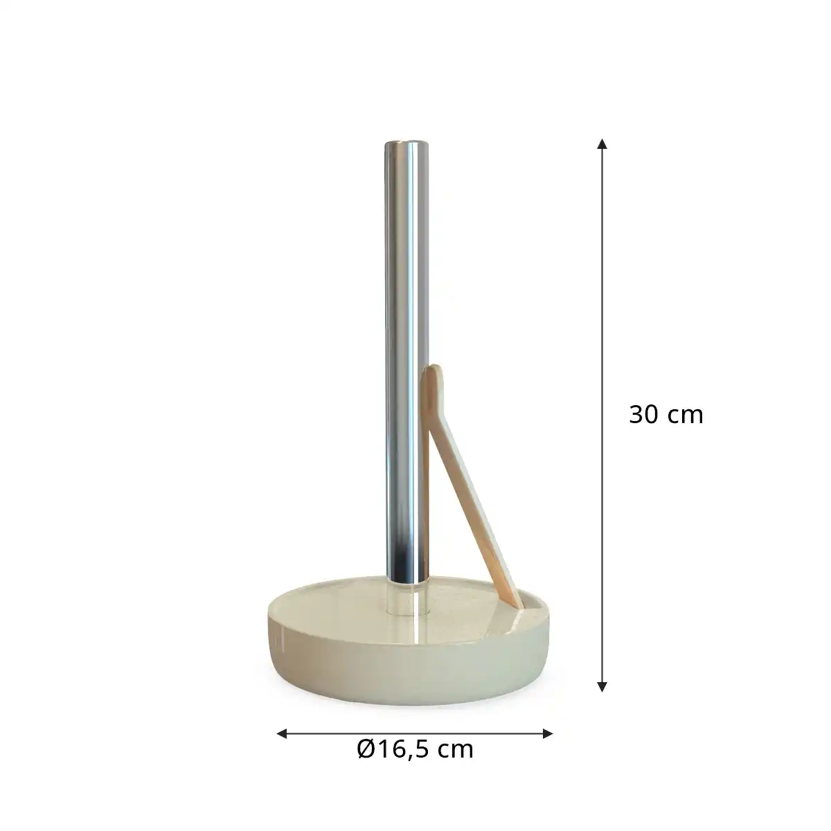 Bej tasarımıyla mutfak veya banyonuza modern ve sıcak bir görünüm kazandırır.Plastik ve çelik malzeme kombinasyonu, dayanıklılık ve uzun ömürlü kullanım sağlar. 16,5 x 30 cm ölçüleri, kağıt havlularınızı pratik ve düzenli bir şekilde saklamanıza olanak tanır. Kompakt yapısı sayesinde tezgah üzerinde az yer kaplar.
