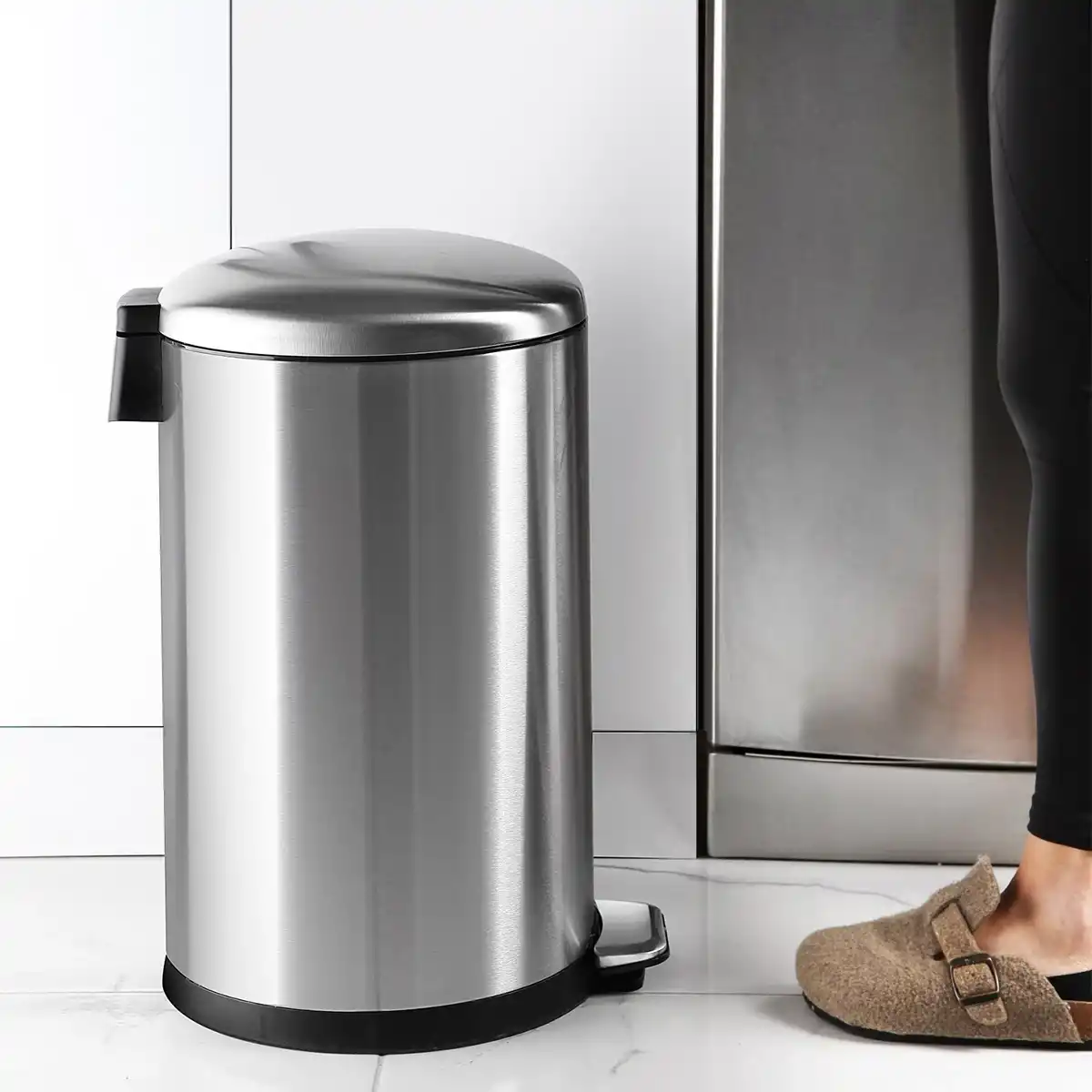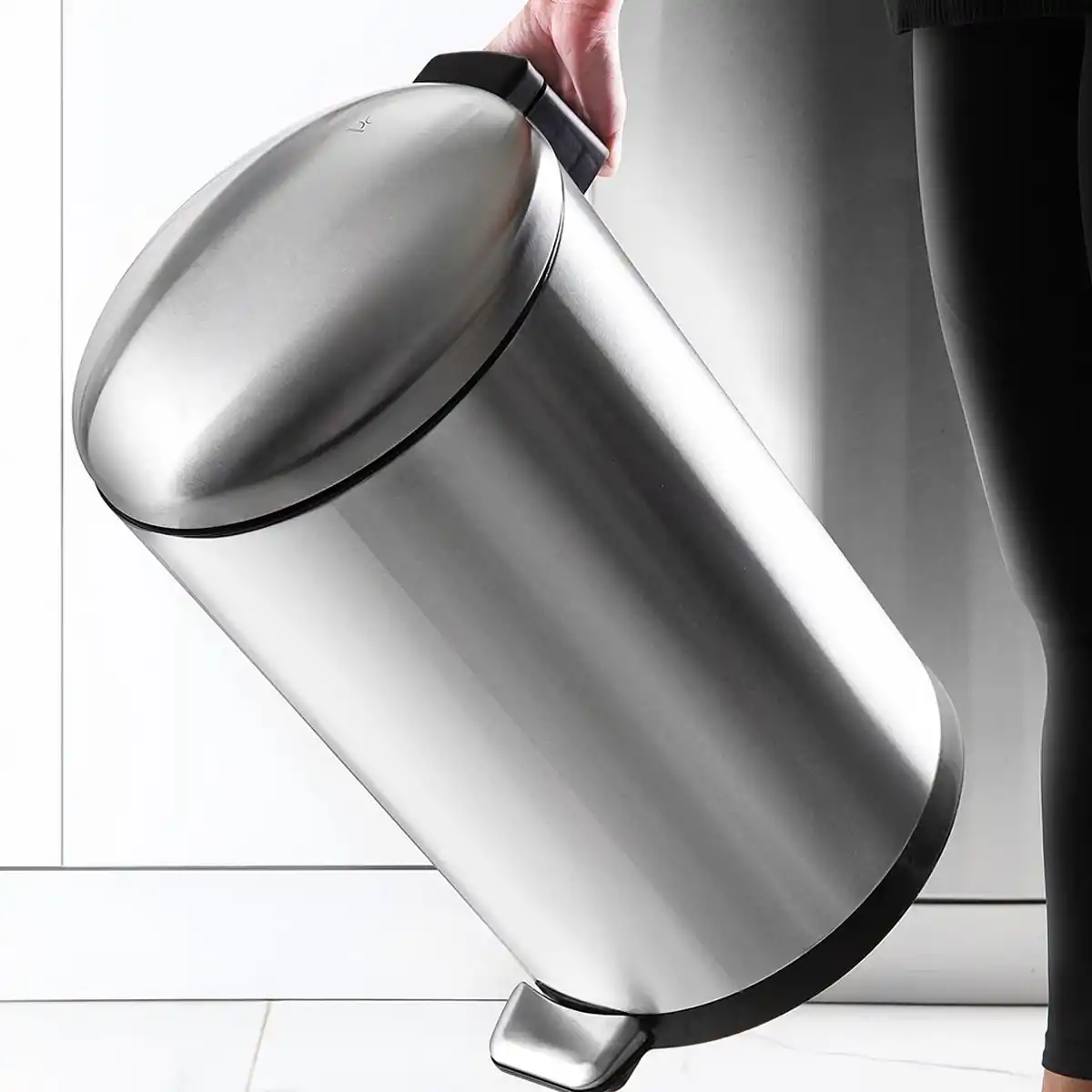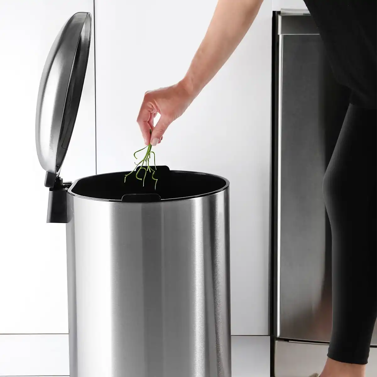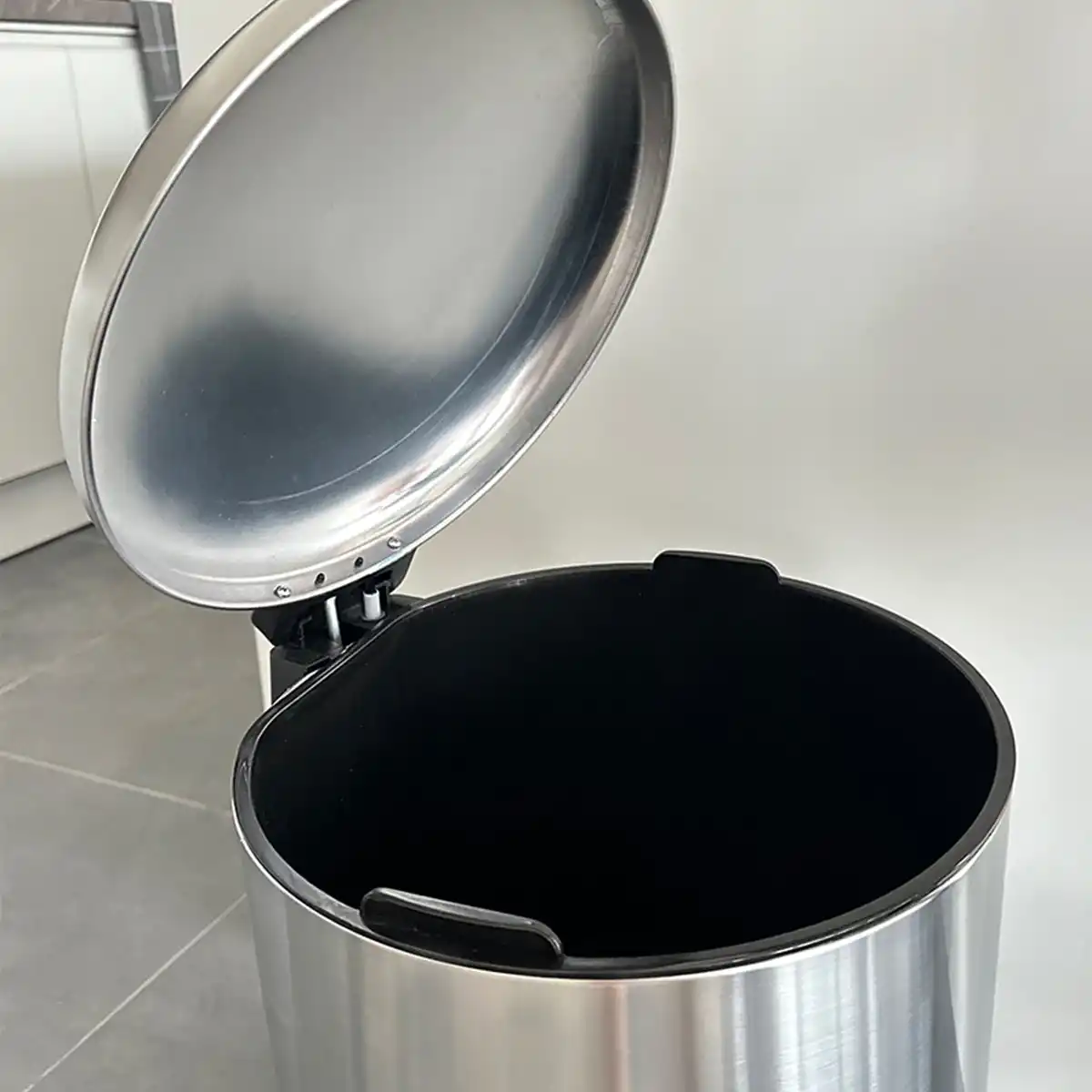 Bombe kapak tasarımıyla modern ve estetik bir görünüm sunar.Dayanıklı çelik malzeme, uzun süreli kullanım imkânı sağlar. 31,3 x 41 x 56 cm ölçüleri ve 30 L kapasitesi, geniş hacmiyle ev veya ofis kullanımına uygundur. Kapaklı yapısı sayesinde hijyenik ve pratik kullanım sağlar.