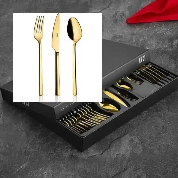 Avcı Klas T. Gold 36 Parça Çatal Kaşık Bıçak Seti, sofralarınıza zarafet ve kaliteyi bir arada sunar. Gold detaylı şık tasarımı ile özel davetlerden günlük kullanıma kadar her sofraya uyum sağlar. 36 parçalık kapsamlı içeriği, aileniz ve misafirleriniz için ideal bir kullanım sunar.