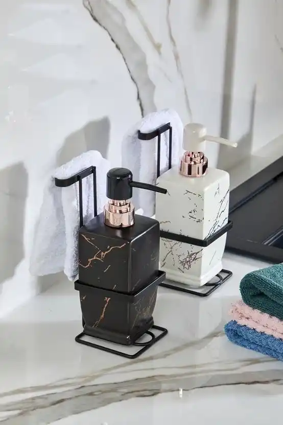 Dayanıklı stoneware seramik malzeme, ürünün hem uzun ömürlü hem de estetik olmasını sağlar. Modern ve zarif tasarımı, lavabo kenarında dekoratif bir görünüm sunarken, sabun veya sıvı deterjan kullanımı için pratik bir çözüm sunar.