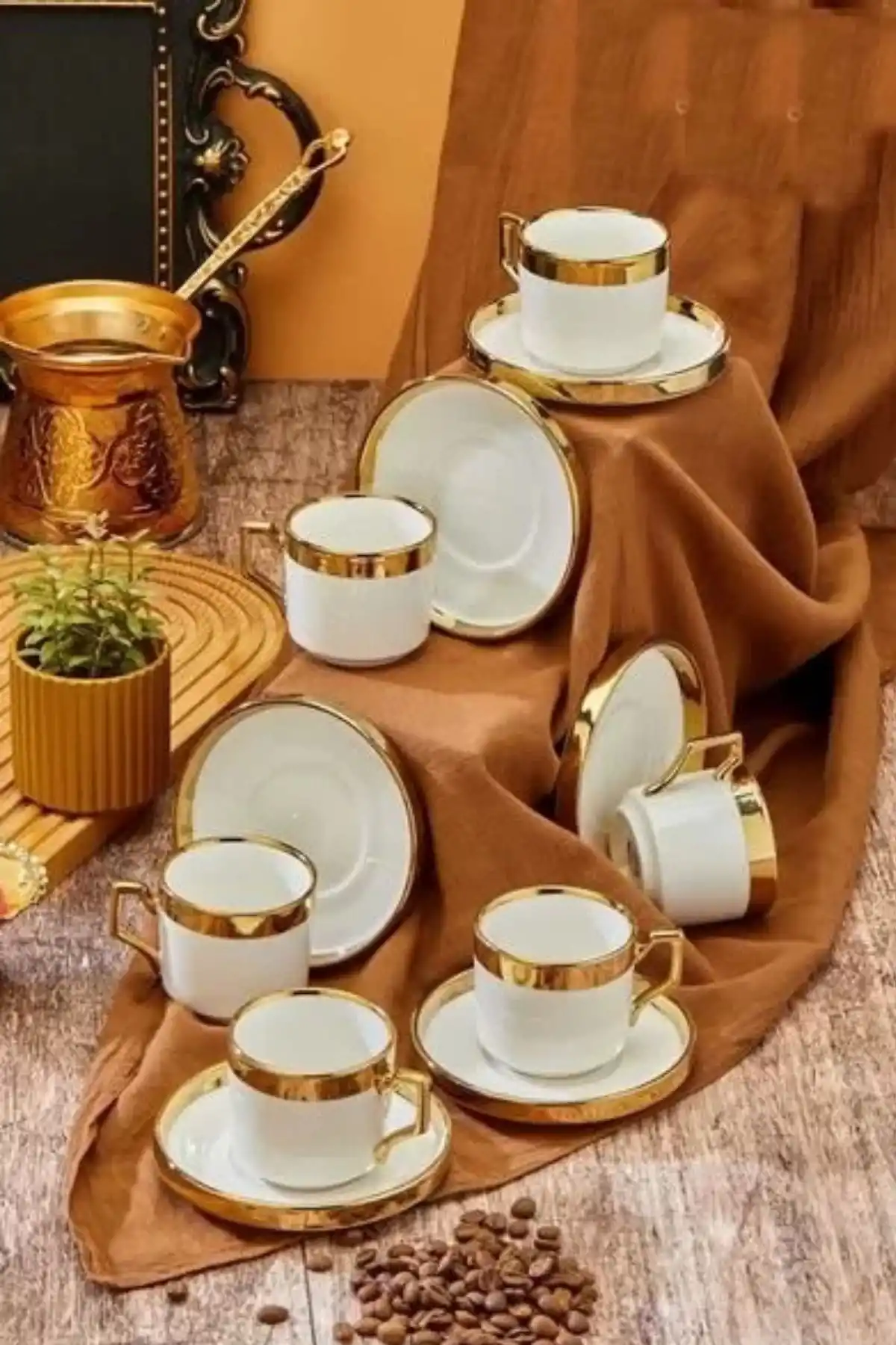 Cooker CKR3524 Gold Detaylı Porselen Kahve Fincan Takımı 6’lı, kahve saatlerinizde hem şıklığı hem de fonksiyonelliği bir arada arayanlar için ideal bir tercihtir.
