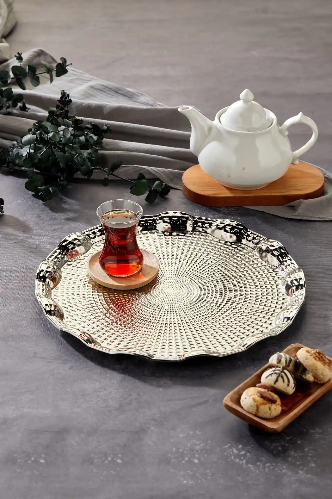 Cooker CKR3572 Metal Tepsi 35 cm, dayanıklı metal yapısı ve şık tasarımıyla sofralarınızda hem fonksiyonellik hem de estetik sunar. 35 cm çapı ile kahvaltı, ikram veya servisler için ideal boyutta tasarlanmıştır.