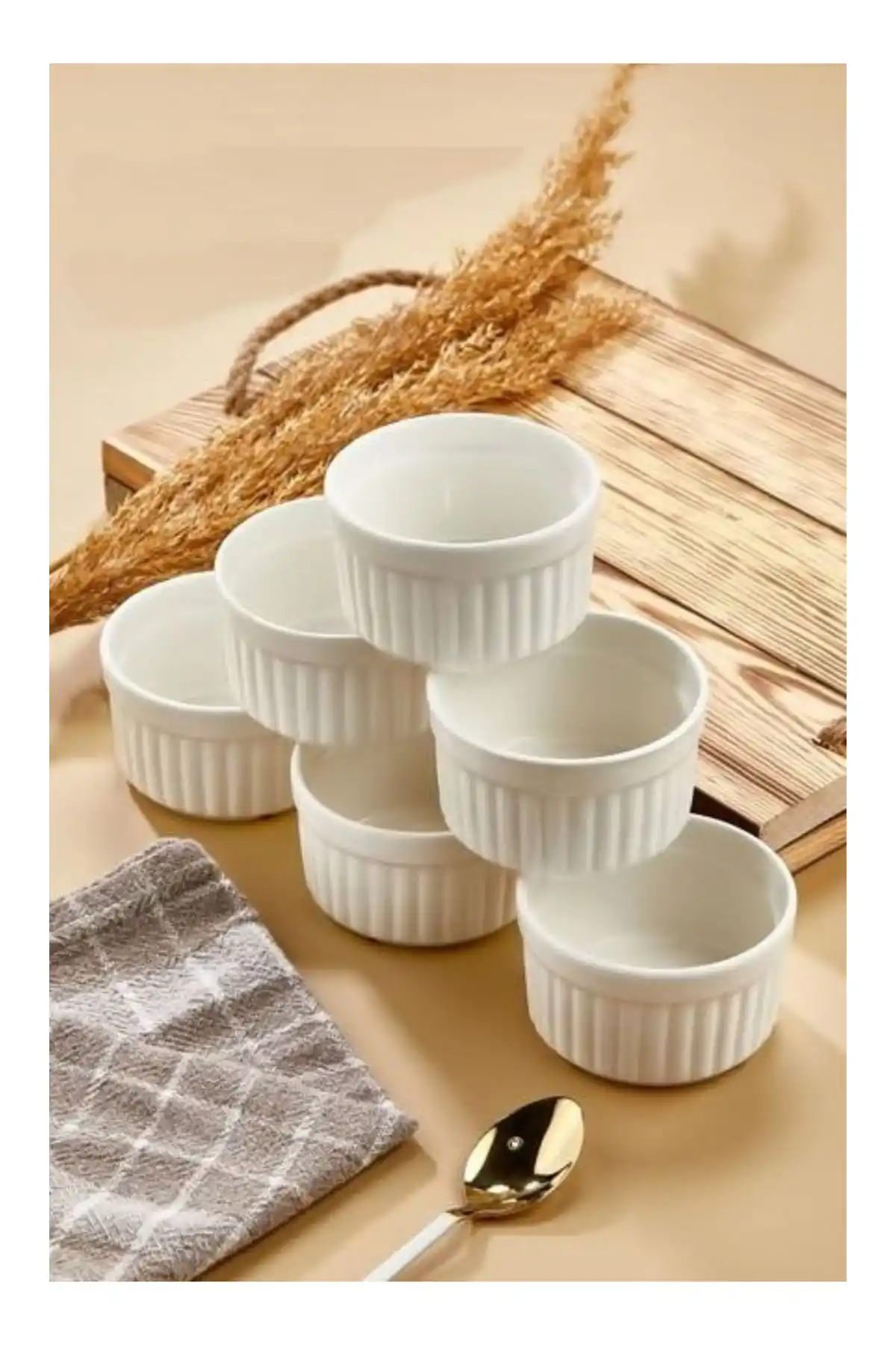 Cooker CKR4036 Porselen Sufle Kabı, küçük boy porselen kaplardan oluşan 6’lı bir settir ve sufle pişirme ile servis işlemlerinde rahatlıkla kullanılabilir. Doğal ve sade görünümü, sofralarınıza minimalist bir şıklık katar. Dış yüzeyindeki ince işlemeler, modern ve estetik bir dokunuş sağlar.