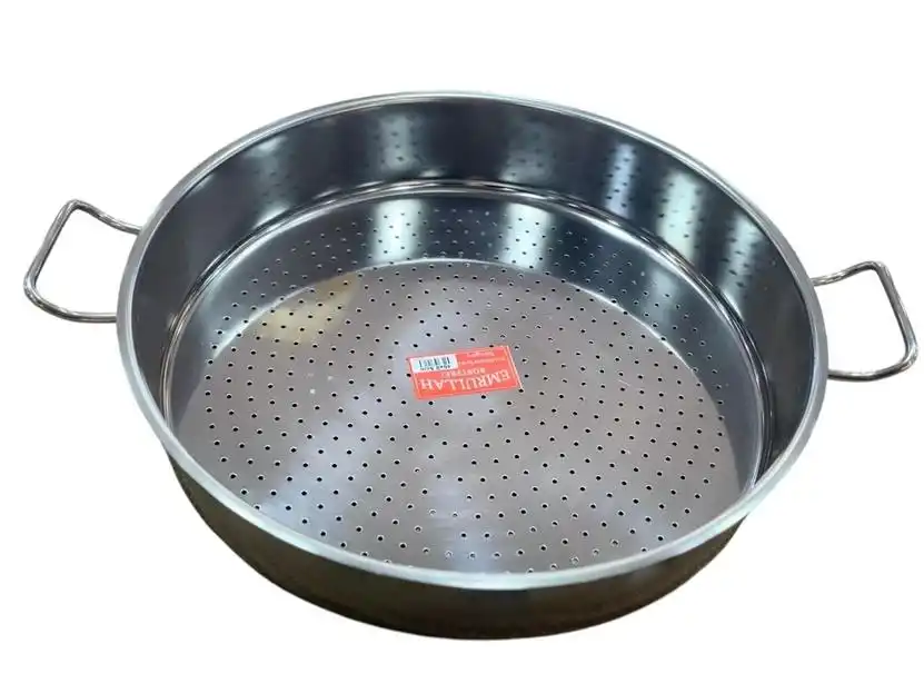 Emrullah EMR BS46 Büyük Boy Metal Süzgeç 46,5 cm, dayanıklı metal malzemesi ile sebze, meyve, makarna ve diğer yiyecekleri süzmede pratik ve güvenli kullanım sağlar. 46,5 cm çapı, büyük miktardaki gıdaların hızlı ve kolay süzülmesine imkân tanır. Sağlam metal yapısı, uzun ömürlü kullanım ve hijyenik temizlik avantajı sunarak mutfakta konforlu bir deneyim sağlar.