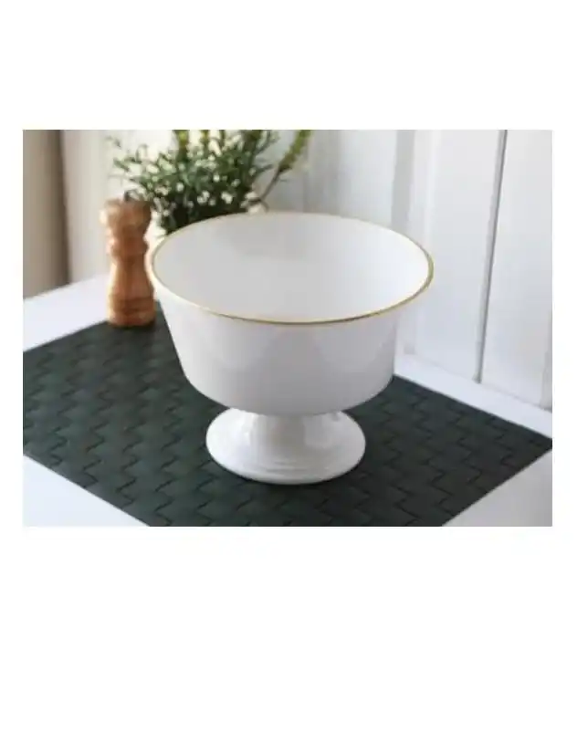 Gönül GNL 2803 Gold Kenarlı Beyaz Seramik Ayaklı Meyvelik 22,5x16,5 cm, sunumlarda hem şıklık hem fonksiyonellik arayanlar için mükemmel bir tercihtir.