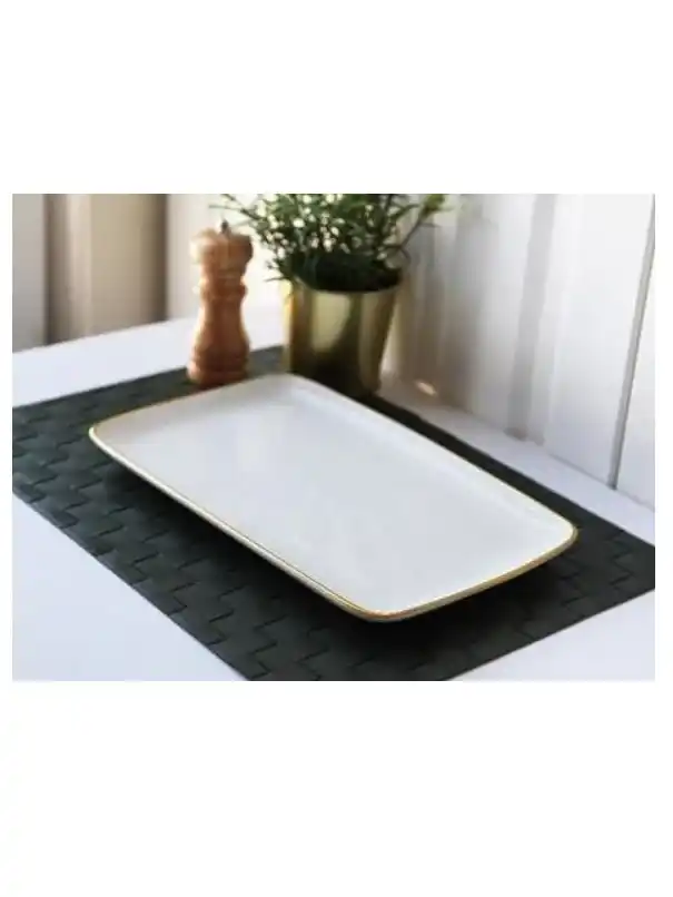 Gönül GNL 2808 Gold Kenarlı Beyaz Seramik Ordövr Tabak 32,5x21 cm – Şık ve Zarif Sunum