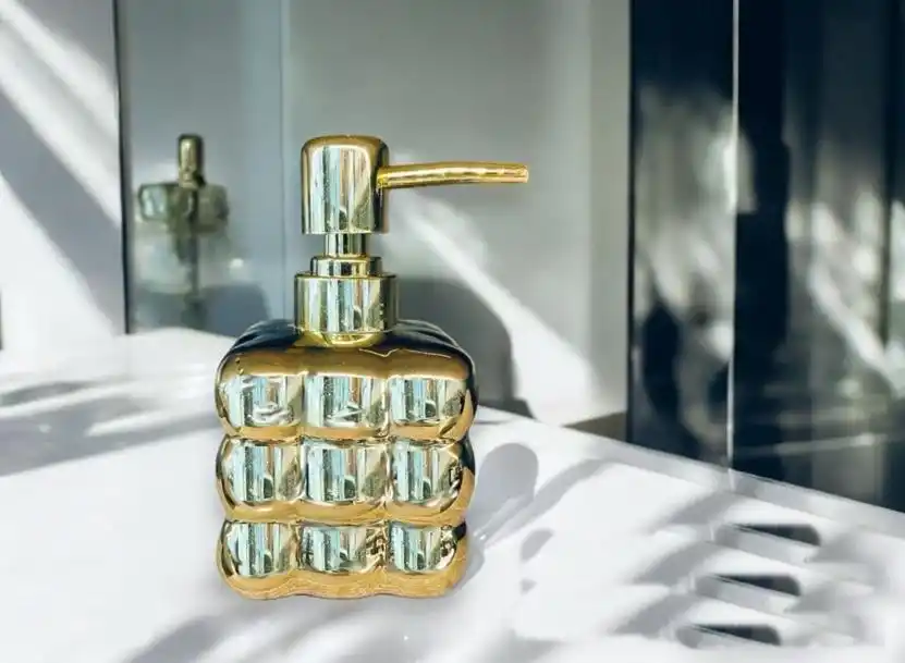 Gönül GNL 4860 Gold Seramik Sıvı Sabunluk, 7x13,5 cm ölçüleri ile banyo ve mutfakta pratik kullanım sağlayan şık bir üründür. Gold seramik yapısı, dayanıklı ve uzun ömürlü kullanım sunar. Minimalist ve modern tasarımı ile farklı dekorasyon stilleriyle uyum sağlar.