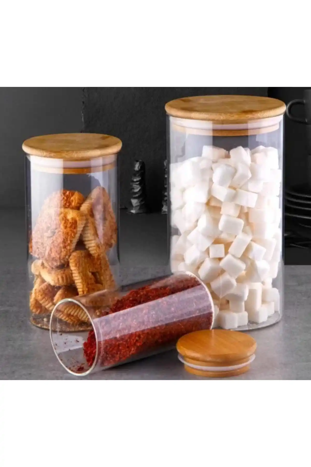 Gönül GNL 3839 Bambu Kapaklı Borosilikat Cam Kavanoz 3'lü