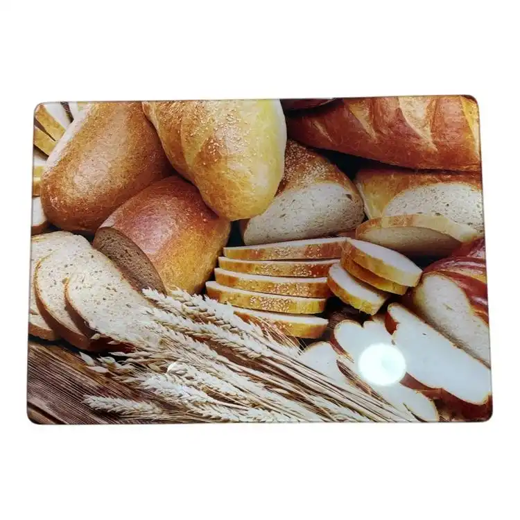Kosova Ekmek Desenli Cam Kesme Panosu 20x30 cm, mutfağınızda hem fonksiyonel hem de estetik bir dokunuş arayanlar için ideal bir üründür. Ekmek desenli tasarımı, doğal ve rustik bir hava katarak mutfak dekorasyonunuza uyum sağlar.