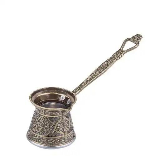 Kosova No 4 Zamak Döküm Yeşil Renk Cezve, Türk kahvesi tutkunları için estetik ve fonksiyonelliği bir arada sunan kaliteli bir üründür. Zamak döküm malzeme kullanılarak üretilmiş olup, yeşil renk tasarımıyla mutfağınıza zarif bir dokunuş katar.