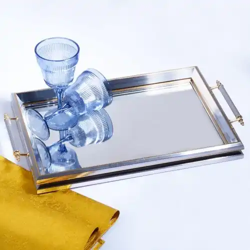 Şık ve Zarif Tasarım:Kosova Gümüş Tepsi 50 x 31 cm, modern gümüş rengi tasarımıyla sofralarınıza estetik ve lüks bir dokunuş katar.