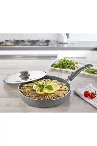 Ley Mia Marble Balık Tava 28 Cm, balık ve diğer hassas yiyecekleri yapışmadan, dağılmadan pişirmeniz için tasarlanmıştır. Mermer kaplaması sayesinde hem sağlıklı pişirme sunar hem de temizliği son derece pratiktir. Geniş yüzeyi ile büyük balıkları tek parça halinde rahatlıkla pişirebilir, sofranıza kusursuz sunumlar hazırlayabilirsiniz.