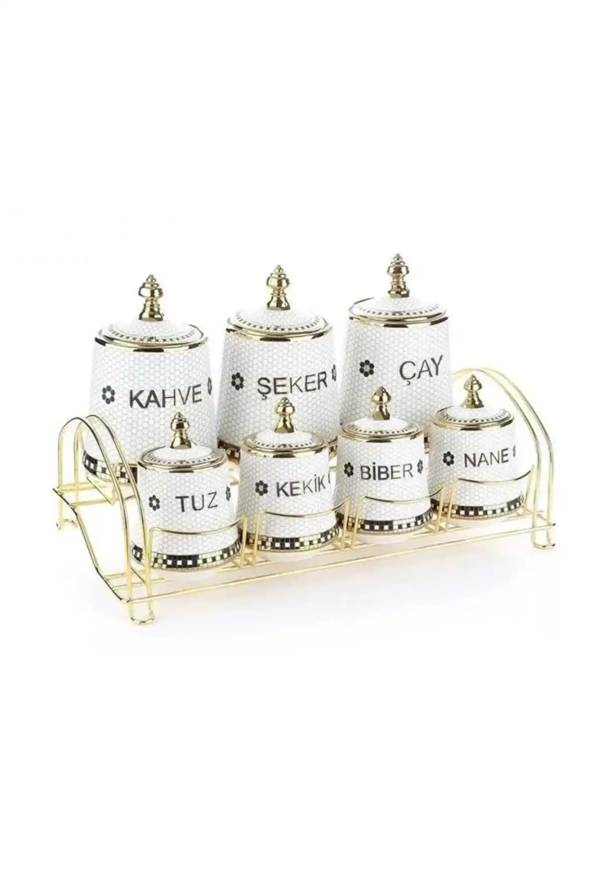 Petek desenli tasarımı ile modern ve estetik bir görünüm sunan bu baharatlık takımı, 7 parçadan oluşur ve mutfağınızdaki baharatları düzenli, kolay erişilebilir biçimde saklamanızı sağlar.
