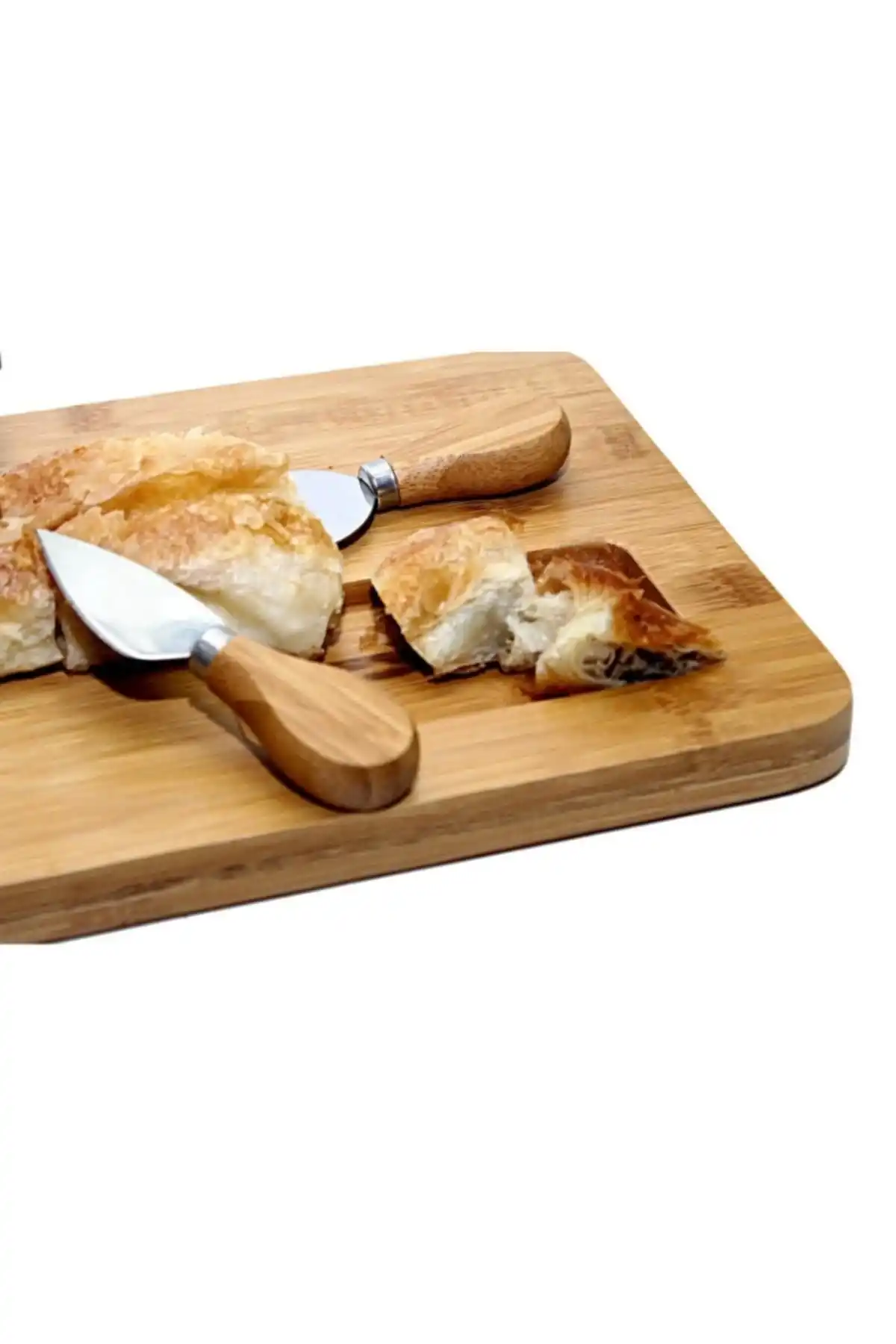 Mien MEN244 Bambu Peynir Sunum Seti, peynir ve börek sunumlarınızı şık ve modern bir şekilde gerçekleştirmek için tasarlanmış bir üründür. Bambu servis tahtası dayanıklı ve uzun ömürlüdür, set içerisindeki servis bıçakları ve çatalı ile kullanımı son derece pratiktir.