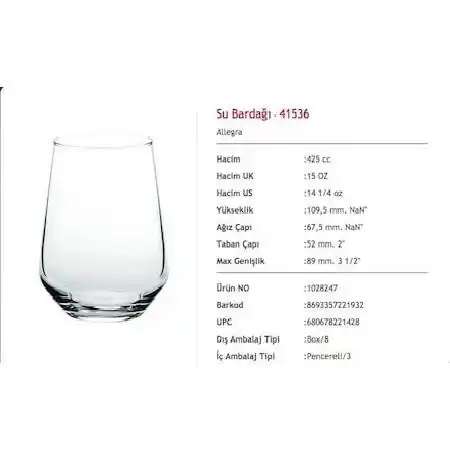 Paşabahçe 41536 Sade Allegra Su Bardağı 425 cc 3’lü, sade ve şık tasarımıyla günlük kullanım için ideal bir bardak setidir. Geniş hacmi sayesinde su, meşrubat ve diğer soğuk içeceklerin rahatlıkla servis edilmesini sağlar.