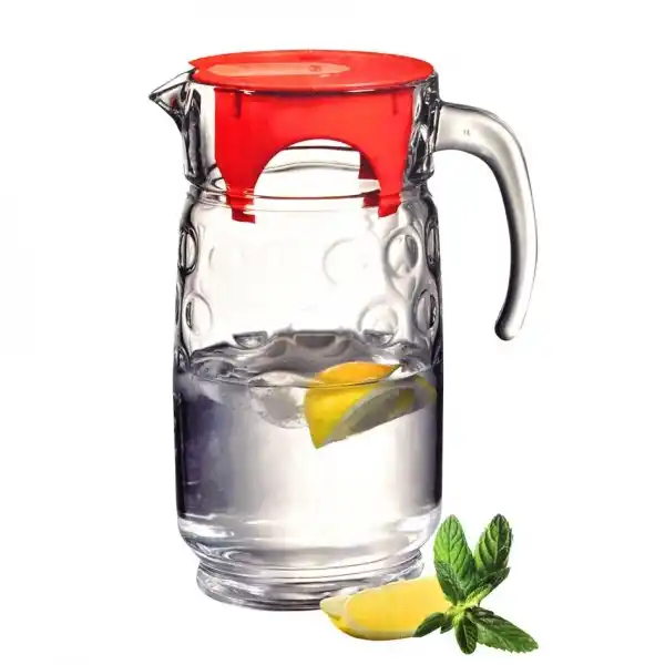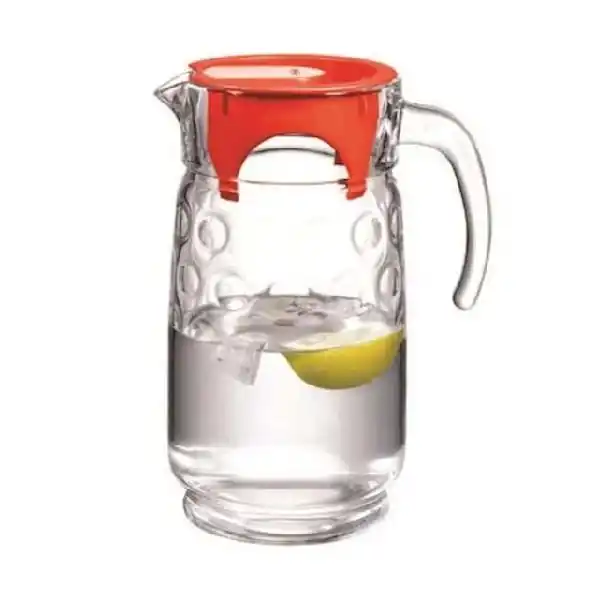 Paşabahçe 43794 Rings Kırmızı Kapaklı Cam Sürahi 1700 cc, modern tasarımı ve geniş hacmiyle soğuk içecek sunumları için pratik ve şık bir çözümdür. Renkli kapak detayı, sürahinin estetik görünümünü tamamlamanın yanı sıra dökülmeyi önleyerek kullanım kolaylığı sağlar.