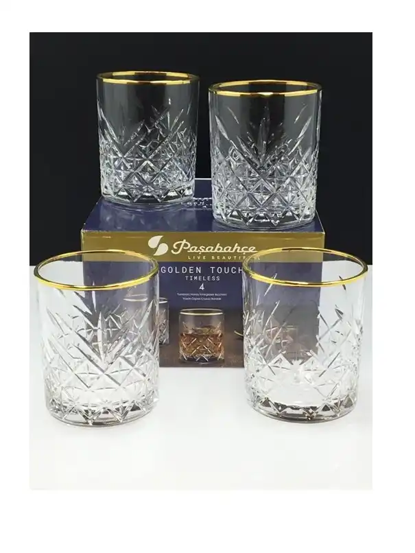 Paşabahçe 520414 Golden Touch Viski Bardağı 420 cc 4’lü, zarif tasarımı ve dayanıklı cam yapısıyla viski ve diğer içeceklerinizi şık bir şekilde sunmanızı sağlar. Hem ev hem de profesyonel kullanımlar için ideal bir bardak setidir.