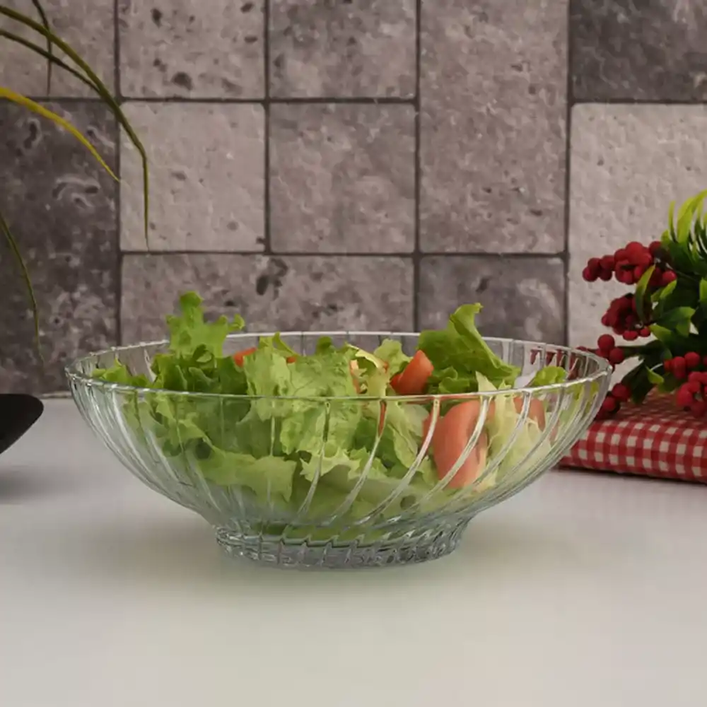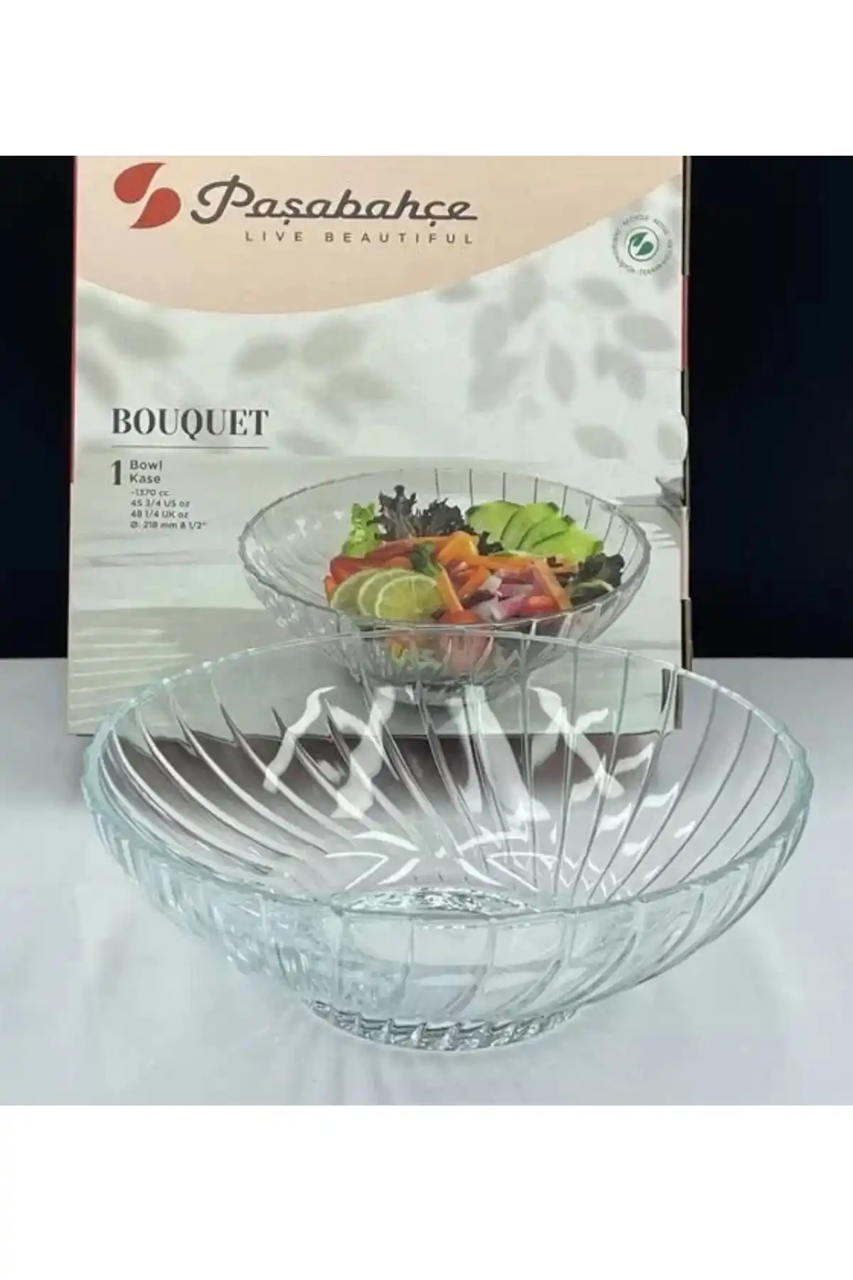 Paşabahçe 530124 Bauquet Cam Kase 1370 cc, geniş hacmi ve sade tasarımıyla mutfakta çok yönlü kullanım imkânı sunar. Salata, meyve, tatlı veya çeşitli sunumlar için ideal bir üründür.