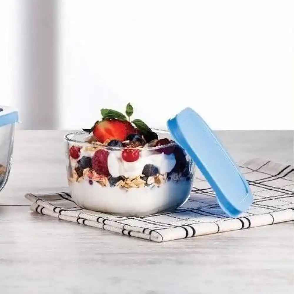 Yüksek kaliteli cam malzeme ile üretilmiş bu saklama kapları, gıdalarınızı sağlıklı ve hijyenik koşullarda muhafaza etmenizi sağlar. Sızdırmaz plastik kapakları, hem tazeliği korur hem de taşıma sırasında dökülmeleri önler.