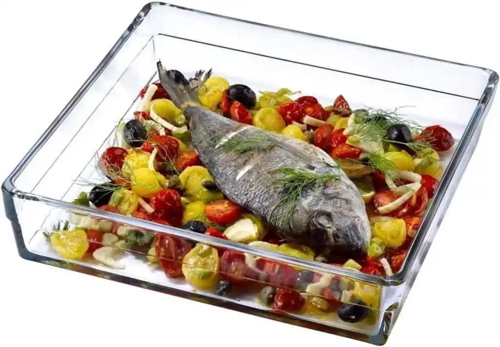 Mutfakta pratik ve şık pişirme çözümleri sunan Paşabahçe 59314 Kare Borcam Fırın Tepsisi, 4100 cc geniş hacmi ve 29x29 cm boyutlarıyla büyük porsiyonlu yemekler, tatlılar, börekler ve sebze yemekleri için idealdir. Kare formu, eşit ısı dağılımı sağlayarak yemeklerinizi daha lezzetli ve homojen pişirmenizi destekler.